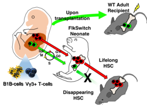 We recently discovered a developmentally-restricted hematopoietic stem cell (drHSC) that only exists during early life but is responsible for producing innate-like immune cells that persist into adulthood (Beaudin et al, Cell Stem Cell, 2016). Innate-like lymphocytes, including B1 B cells, γδ-T cells, and recently described innate lymphoid cells (ILCs), play critical roles in mediating tolerance and rapid response to infection, and have also been implicated in autoimmunity and atopic disorders. The identification of a transient cell of origin that generates a distinct component of adult immunity defines a “critical window” for immune development. A critical developmental window is defined as an early sensitive period during which phenotype can be shaped by intrinsic or extrinsic factors. We hypothesize that developmental perturbation shapes autoimmune disease susceptibility by altering hematopoietic and immune development during a critical window. We have demonstrated that maternal immune perturbation with a single low-dose intraperitoneal injection of poly (i:c) during gestation results in specific expansion drHSCs and their progeny in neonates and abnormal persistence of the drHSC into adulthood. How perturbation of the fetal HSC compartment and establishment of developmentally-restricted immune progeny will affect the functional characteristics of the developing and adult immune system are poorly understood. Currently, our lab uses lineage tracing approaches, gene expression profiling, and ex vivo functional assays to define how the maternal immune response influences immune function across the lifespan. By determining how early life events shape the developing HSC compartment and fetal-derived immune cells, this work will take an innovative approach to identifying the cellular drivers of autoimmune disease susceptibility.