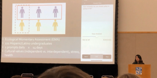This data blitz presentation highlighted the dynamic nature of culture, where independent and interdependent values were measured using an ecological momentary assessment (EMA) approach. Results show that when a Latino individual reported higher levels of interdependence than typical, that person also reported better stress and health: lower levels of stress, rumination, anxiety, and sadness, as well as higher coping and self-reported health. Findings suggest that assessment of culture is vital for stress and health outcomes and highlight important implications for using dynamic and ecologically valid measures of culture.