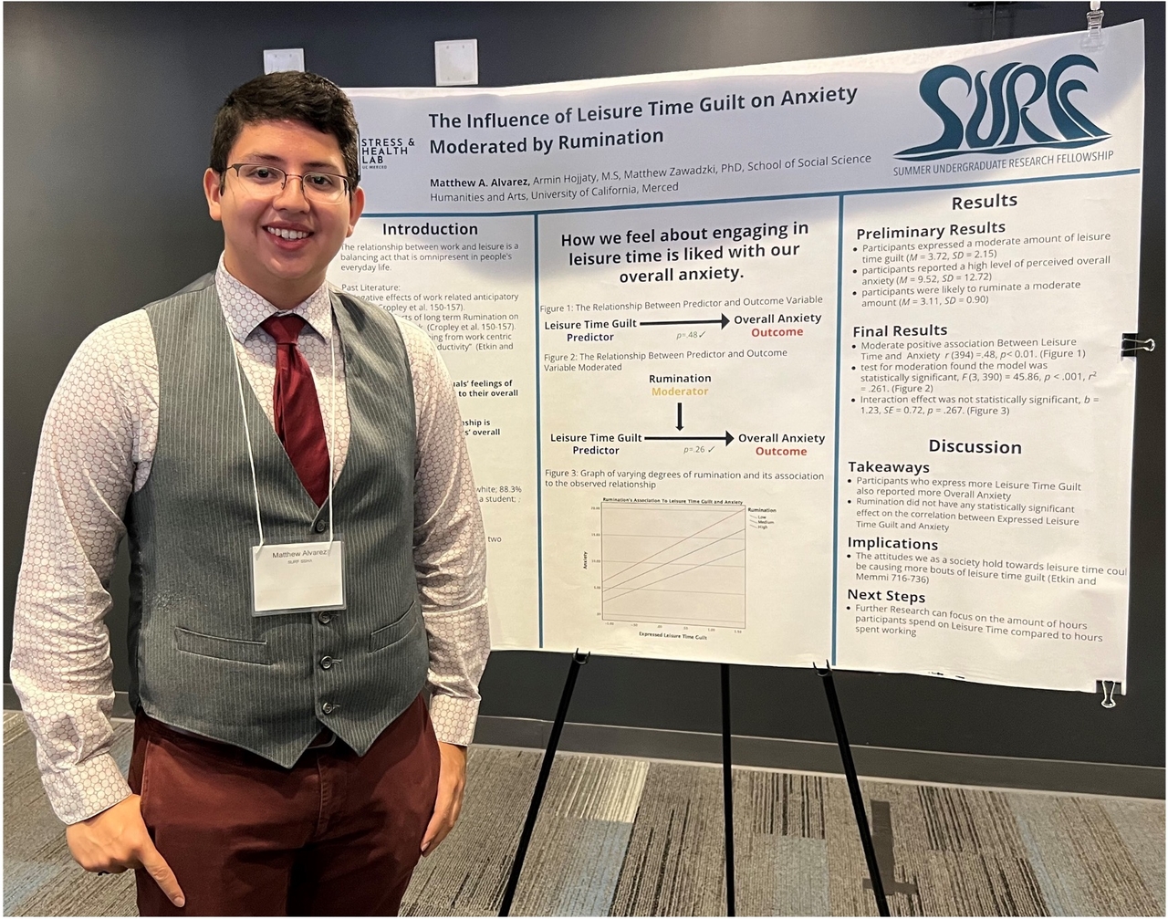 Alvarez, M., Hojjaty, A., & Zawadzki, M. J. (2022, August 5). The influence of leisure time guilt on anxiety moderated by rumination [Poster presentation]. UROC Annual Undergraduate Research Symposium, University of California, Merced