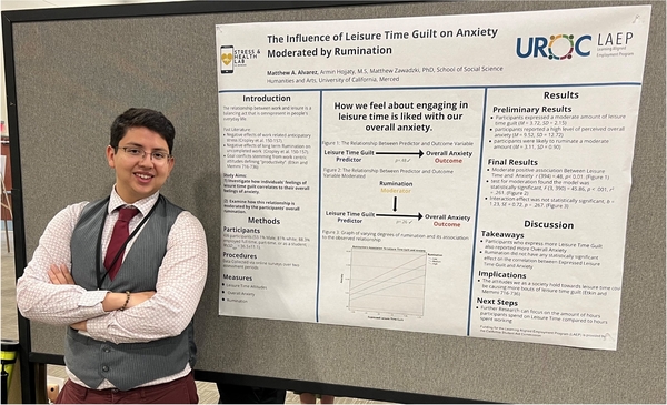 Alvarez, M. A., Hojjaty, A., & Zawadzki, M. J. (2023, April 27-30). Feeling guilty during leisure undermines its protective relationship with anxiety [Poster presentation]. Western Psychological Association Annual Meeting, Riverside, CA, USA.
