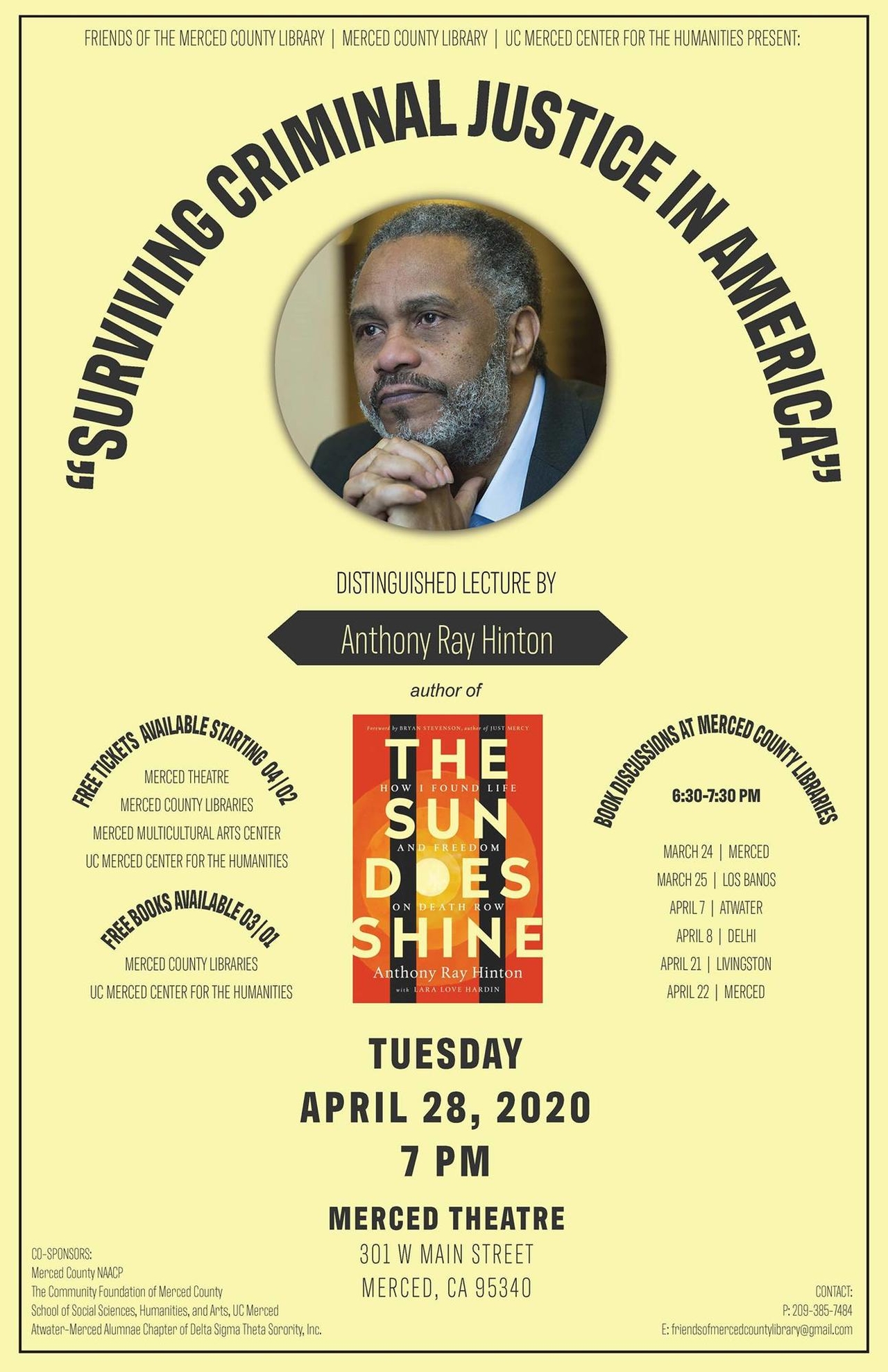 Mr. Hinton spent 30 years on death row in Alabama before being exonerated and released. His memoir, The Sun Does Shine: How I Found Life and Freedom on Death Row, has received national praise and was selected for the Oprah Winfrey Book Club. He will visit Merced to give a distinguished lecture.